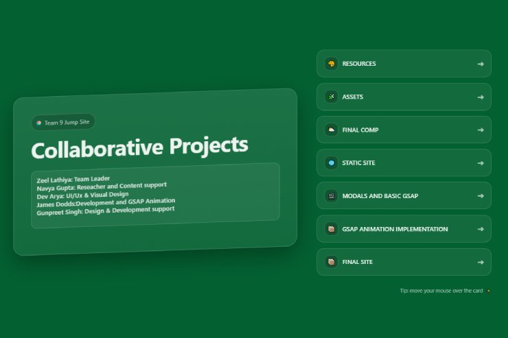 This collaborative project was developed as a team effort to create a modern interactive web experience that combines design, development, and motion elements. The project includes multiple sections such as resources, assets, GSAP animations, and final implementation.